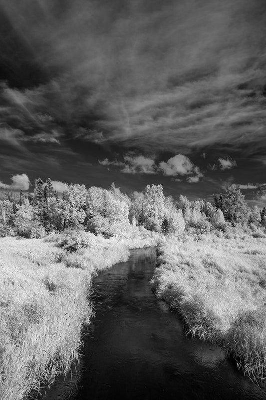 Elk Creek with fresh snow on Steamboat Mountain along the Rocky Mountain Front near Augusta-Montana White Modern Wood Framed Art Print with Double Matting by Haney, Chuck