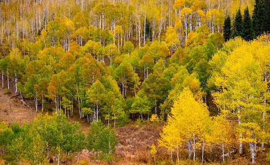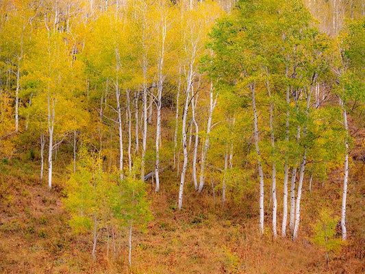 USA-Idaho-Highway 36 west of Liberty and hillsides covered with Aspens in autumn White Modern Wood Framed Art Print with Double Matting by Gulin, Sylvia