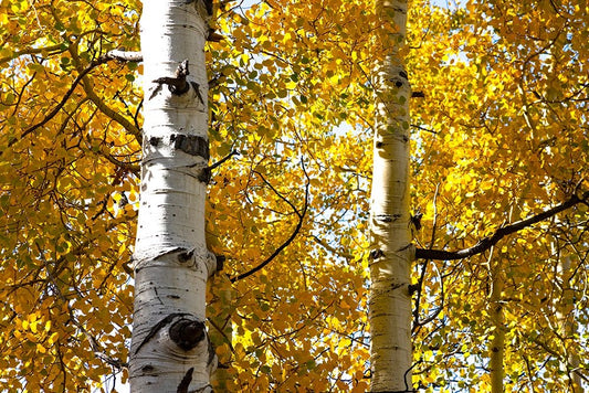 Aspen trees in autumn White Modern Wood Framed Art Print with Double Matting by Ostrowitz, Mallorie