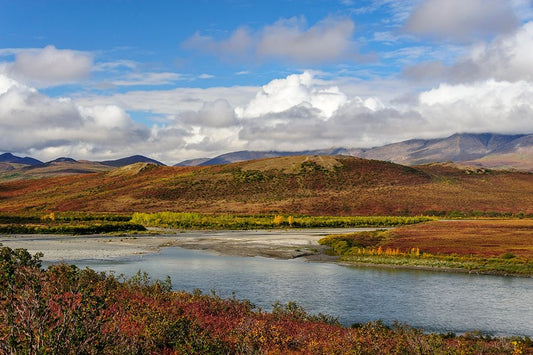 USA- Alaska- Noatak National Preserve. Arctic tundra in autumn colors along the Noatak River. White Modern Wood Framed Art Print with Double Matting by Norrsell, Fredrik