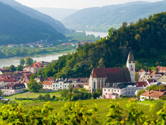 Historic village Weissenkirchen-UNESCO World Heritage Site-Lower Austria White Modern Wood Framed Art Print with Double Matting by Zwick, Martin
