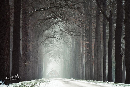 Winter Tunnel White Modern Wood Framed Art Print with Double Matting by Podt, Martin