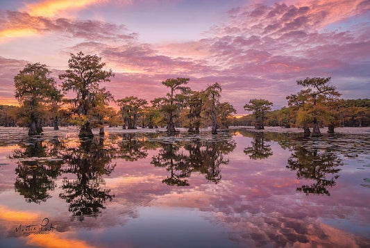 Magnificent Sunset in the Swamps White Modern Wood Framed Art Print with Double Matting by Podt, Martin
