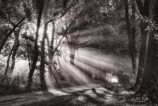 Black and White Rays White Modern Wood Framed Art Print with Double Matting by Podt, Martin