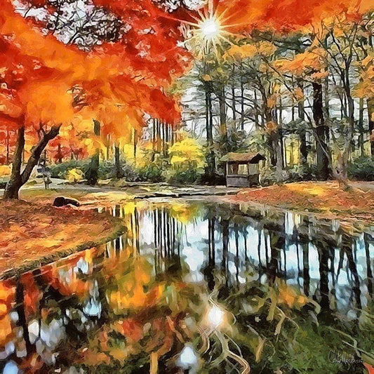 Automne au parc White Modern Wood Framed Art Print with Double Matting by Pinsard, Laurent