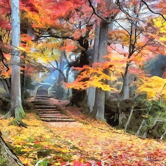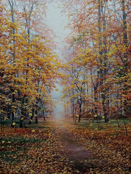Autumn Romance White Modern Wood Framed Art Print with Double Matting by Cernov, Ivan
