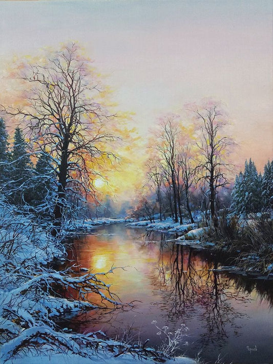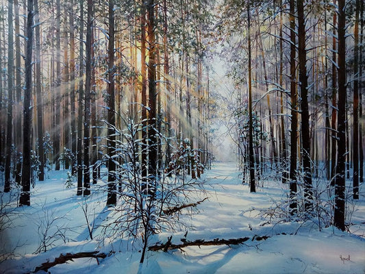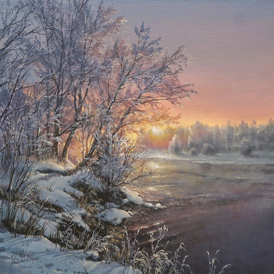 On a Winter Morning White Modern Wood Framed Art Print with Double Matting by Yushkevich, Viktor