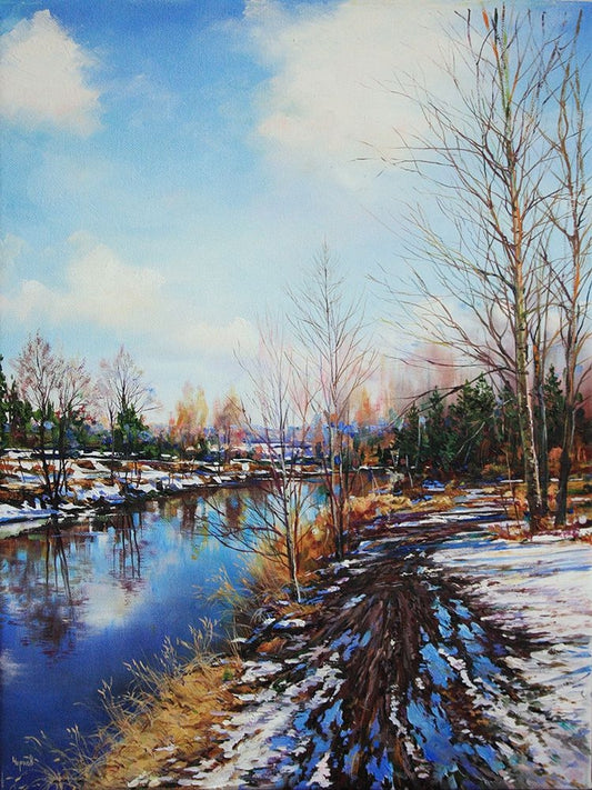 March with Blue Eyes White Modern Wood Framed Art Print with Double Matting by Cernov, Ivan