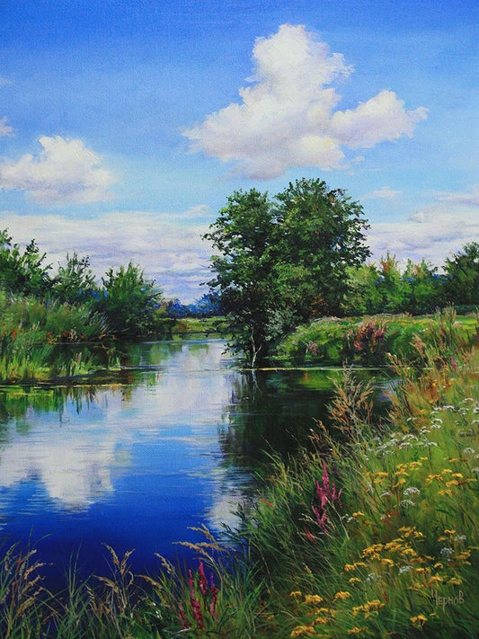 Summer with Honey Flavor White Modern Wood Framed Art Print with Double Matting by Cernov, Ivan