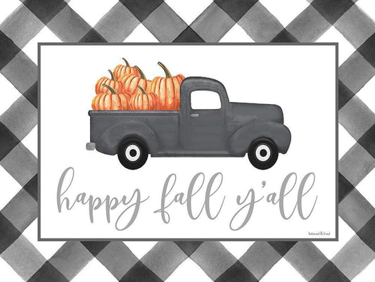Happy Fall Yall White Modern Wood Framed Art Print with Double Matting by Lettered and Lined