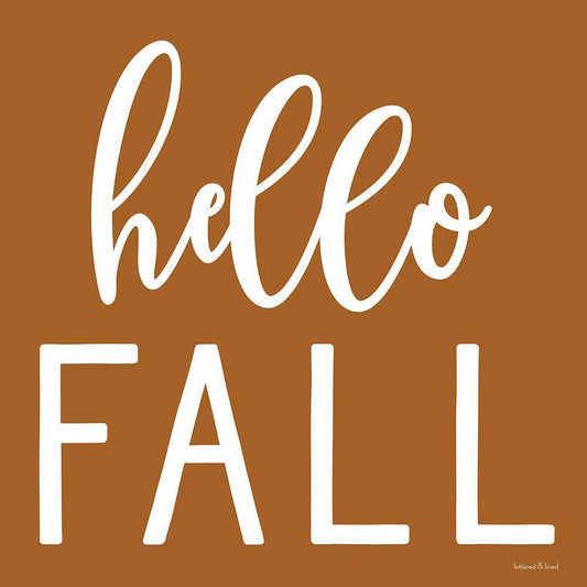 Hello Fall White Modern Wood Framed Art Print with Double Matting by Lettered and Lined