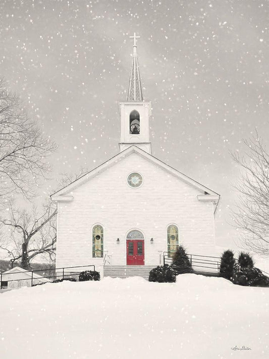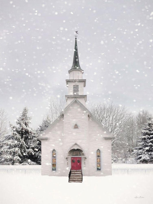Christmas Church White Modern Wood Framed Art Print with Double Matting by Deiter, Lori