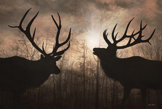 Elk Sunrise III White Modern Wood Framed Art Print with Double Matting by Deiter, Lori