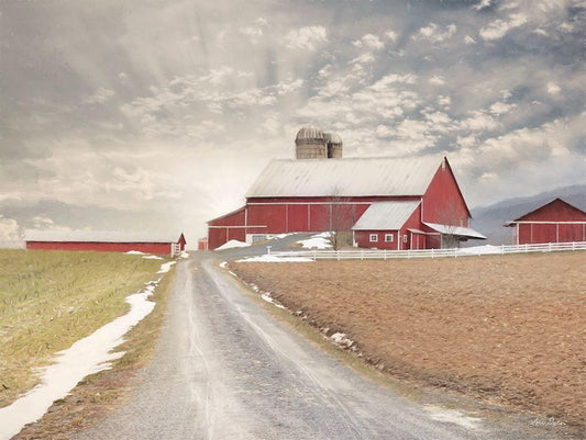 Snowy Mountain Farm White Modern Wood Framed Art Print with Double Matting by Deiter, Lori