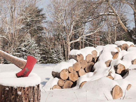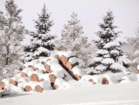 Snowy Wood Pile White Modern Wood Framed Art Print with Double Matting by Deiter, Lori