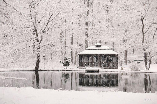 Winter Gazebo White Modern Wood Framed Art Print with Double Matting by Deiter, Lori
