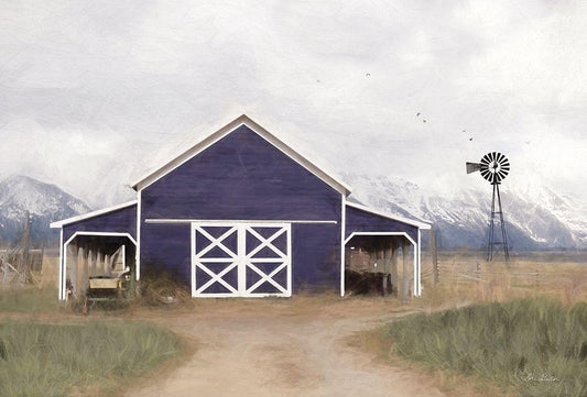 Navy Barn in Tetons White Modern Wood Framed Art Print with Double Matting by Deiter, Lori