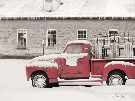 Old Sled Works Red Truck White Modern Wood Framed Art Print with Double Matting by Deiter, Lori