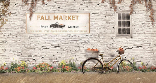 Fall Market with Bike White Modern Wood Framed Art Print with Double Matting by Deiter, Lori