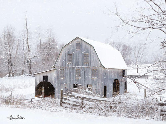 Christmas Barn with Sleigh White Modern Wood Framed Art Print with Double Matting by Deiter, Lori