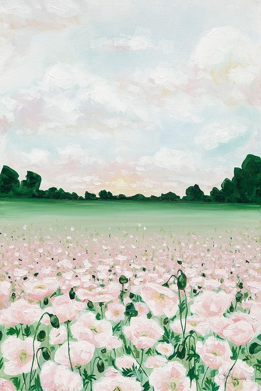 Pink Poppies White Modern Wood Framed Art Print with Double Matting by Hollihocks Art