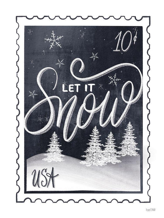 Christmas Stamp Let It Snow White Modern Wood Framed Art Print with Double Matting by House Fenway