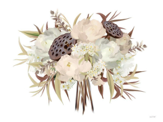 Autumn Boho Bouquet White Modern Wood Framed Art Print with Double Matting by House Fenway