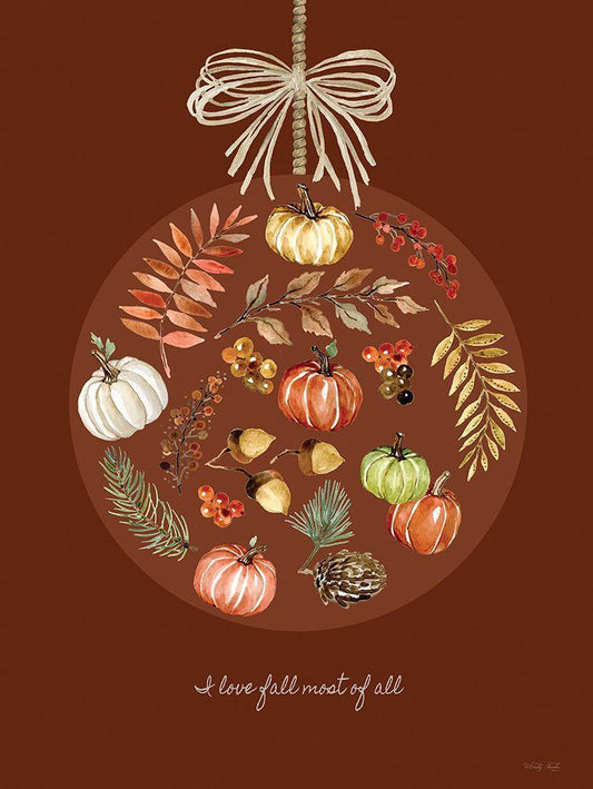 I Love Fall Ornament White Modern Wood Framed Art Print with Double Matting by Jacobs, Cindy