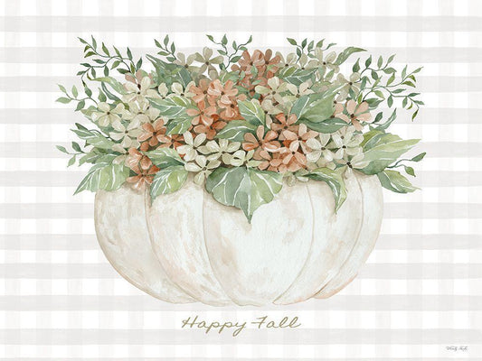 Happy Fall Pumpkin Floral White Modern Wood Framed Art Print with Double Matting by Jacobs, Cindy