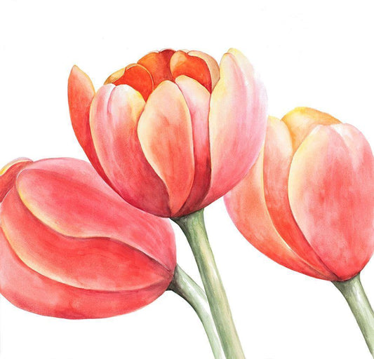 THREE TULIPS CLOSEUP White Modern Wood Framed Art Print with Double Matting by Atelier B Art Studio