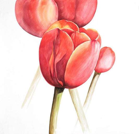 BLOSSOMING TULIPS CLOSEUP White Modern Wood Framed Art Print with Double Matting by Atelier B Art Studio