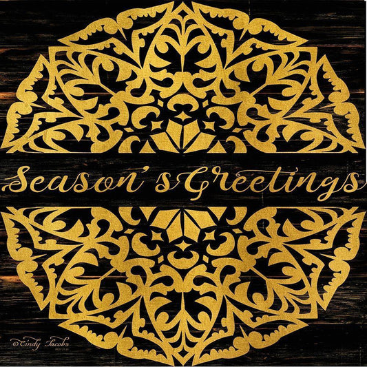 Seasons Greetings Mandala II White Modern Wood Framed Art Print with Double Matting by Jacobs, Cindy
