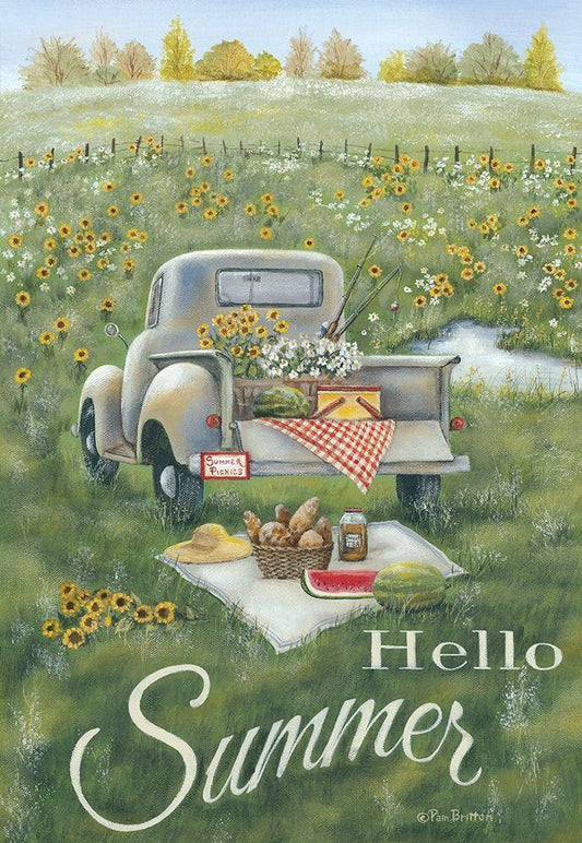 Hello Summer White Modern Wood Framed Art Print with Double Matting by Britton, Pam