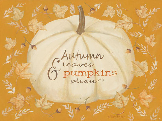 Autumn Leaves And Pumpkin White Modern Wood Framed Art Print with Double Matting by Britton, Pam
