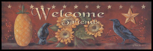 Welcome Friends White Modern Wood Framed Art Print with Double Matting by Britton, Pam