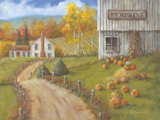 Harvest Pumpkin Farm White Modern Wood Framed Art Print with Double Matting by Britton, Pam