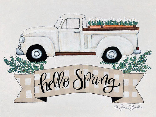 Hello Spring Tulip Truck White Modern Wood Framed Art Print with Double Matting by Ebert, Roey