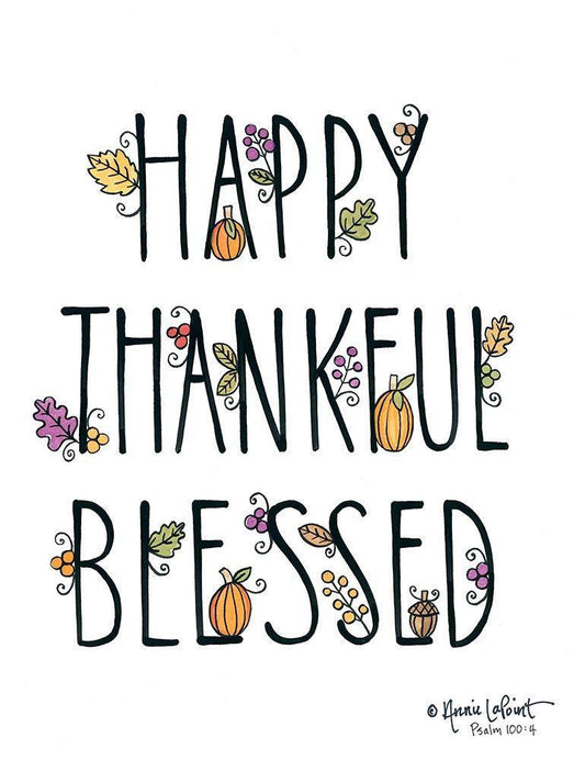 Happy Thankful Blessed White Modern Wood Framed Art Print with Double Matting by LaPoint, Annie