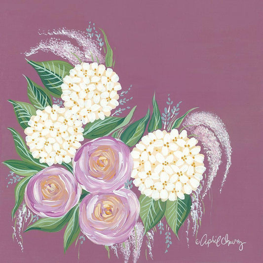Floral in Plum White Modern Wood Framed Art Print with Double Matting by Chavez, April