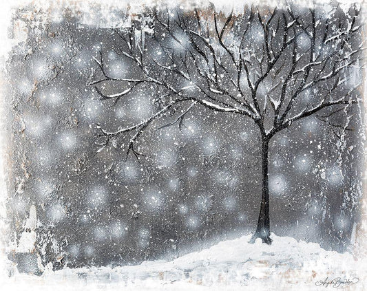 Snow Kissed Tree White Modern Wood Framed Art Print with Double Matting by Bawden, Angela