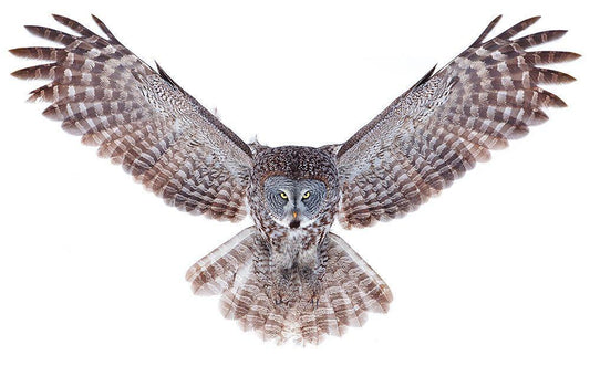 Power - Great Grey Owl White Modern Wood Framed Art Print with Double Matting by Cumming, Jim