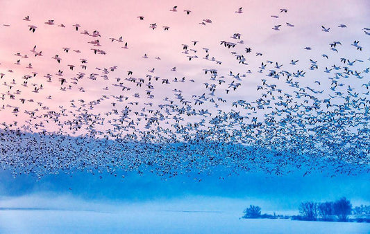 Flying In The Fogging Morning White Modern Wood Framed Art Print with Double Matting by Li, Rob