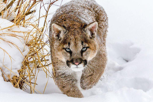 Sneaky Cougar White Modern Wood Framed Art Print with Double Matting by Centioli, Mike