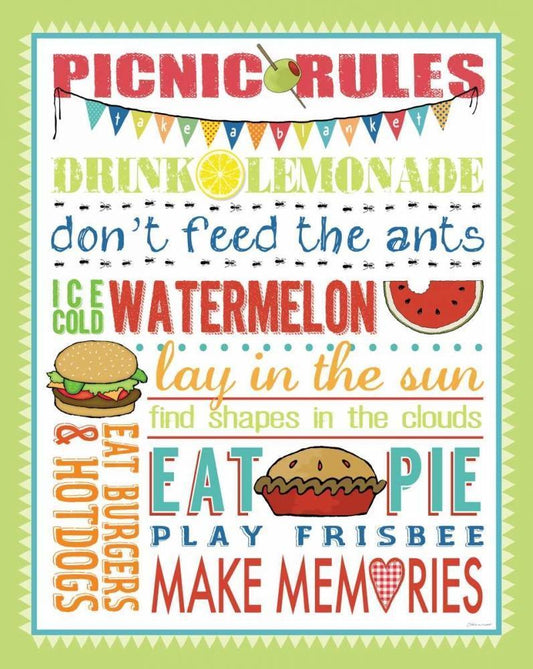 Picnic Rules White Modern Wood Framed Art Print with Double Matting by Marrott, Stephanie