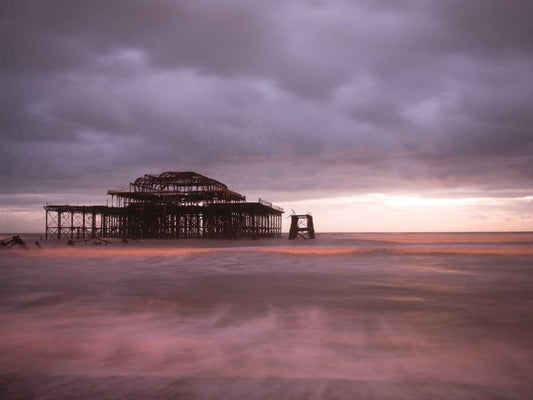 Brighton Pier at dusk White Modern Wood Framed Art Print with Double Matting by Frank, Assaf