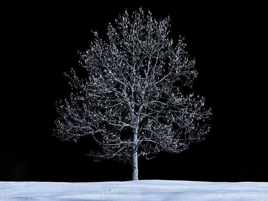 Single tree against skies in snow White Modern Wood Framed Art Print with Double Matting by Frank, Assaf