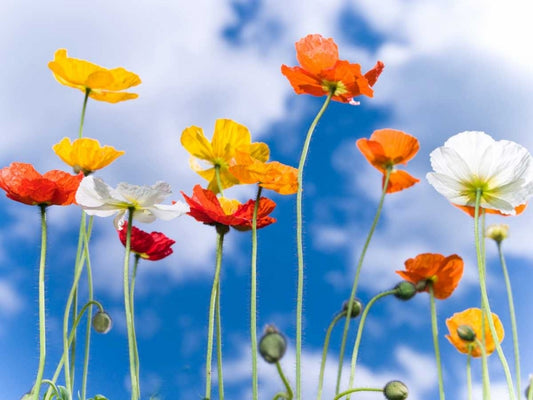 Poppies against blue skies White Modern Wood Framed Art Print with Double Matting by Frank, Assaf