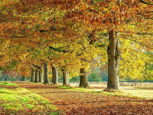 Row of trees in autumn White Modern Wood Framed Art Print with Double Matting by Frank, Assaf