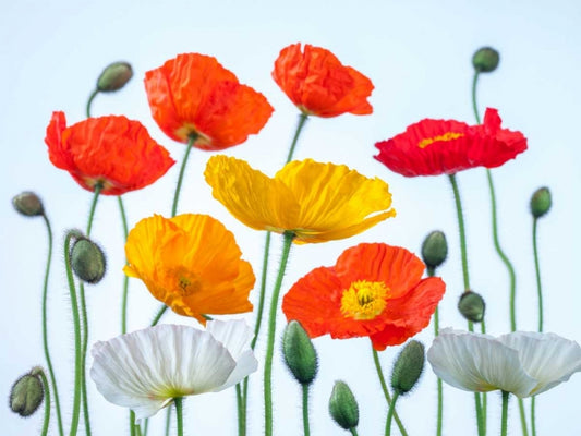 Multi coloured Poppies and buds White Modern Wood Framed Art Print with Double Matting by Frank, Assaf