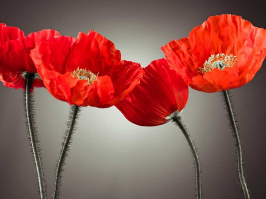 Four Poppies White Modern Wood Framed Art Print with Double Matting by Frank, Assaf